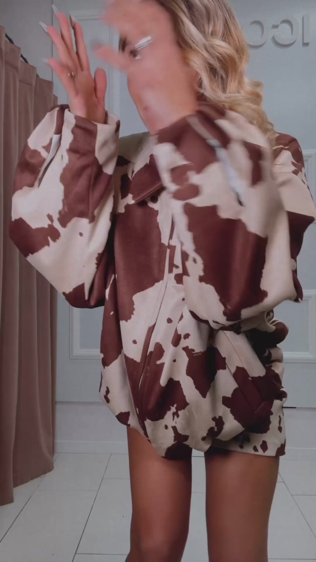 Bomber Oversized di Lumina, scamosciato e foderato internamente. Colletto e maxi zip, tasche e arricciato. Taglia Unica.