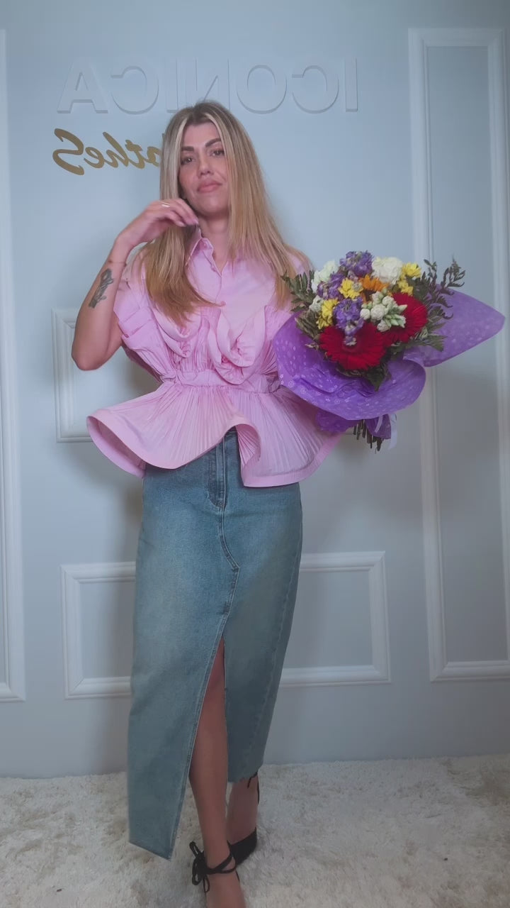 Camicia mezza Manica di Lumina in cotone con Maxi Voulant sulla parte inferiore.