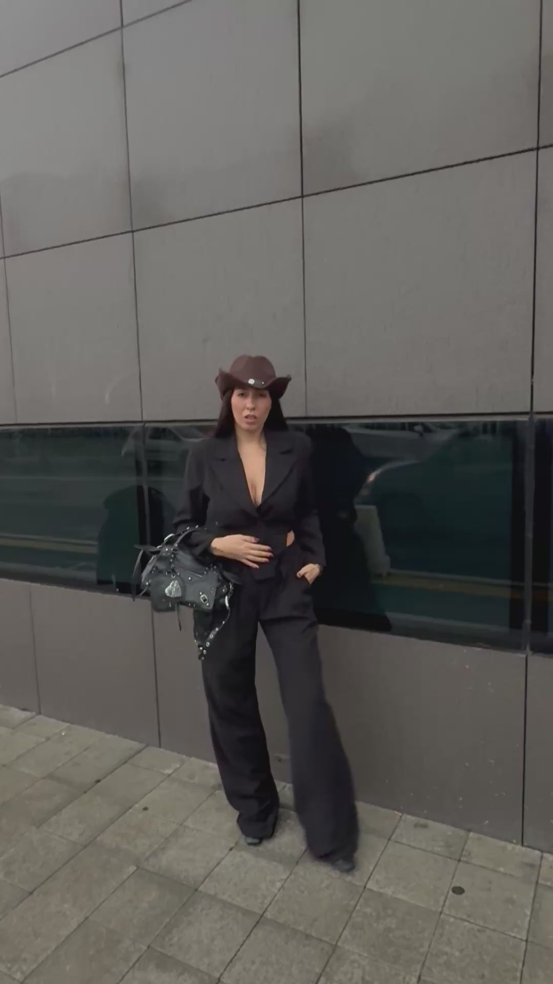 Tailleurs giacca più pantalone, in tessuto, taglia unica. Giacca corta con spalline e bottoncini, taglio asimmetrico, con aperture sui laterali. Si utilizza sia con dei top o camicie al di sotto, altrimenti bellissima lasciata così senza.